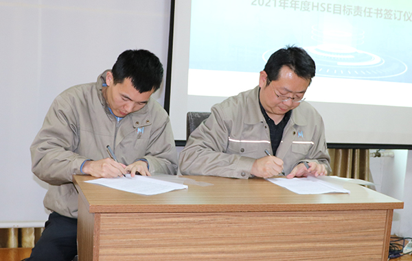 隨后公司總經(jīng)理與生產(chǎn)管理部、HSE管理部,生產(chǎn)管理部與設備管理部,設備管理部與維修維保方簽署了年度HSE責任書。