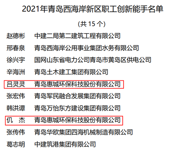 近日,青島西海岸新區(qū)總工會(huì)發(fā)布通知,公布“2021年度青島西海岸新區(qū)創(chuàng)新型班組、職工創(chuàng)新能手、職工創(chuàng)新成果”評(píng)選情況,公司工程技術(shù)研究中心榮獲新區(qū)創(chuàng)新型班組殊榮,該部門副主任呂靈靈、副主任工程師仉杰當(dāng)選新區(qū)職工創(chuàng)新能手。