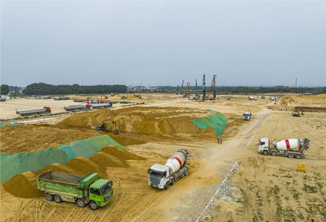 目前,項目正在開展樁基施工、原料處理單元及圍墻的土建工作。項目總變電所工程樁共計117根均已完成,工程樁檢測、辦公樓CFG樁、原料處理單元車間土方開挖、原料處理單元庫房土方開挖、圍墻基礎等工程正同步推進中,2#塔吊基礎澆筑完成,臨建辦公區硬化工作已完成。