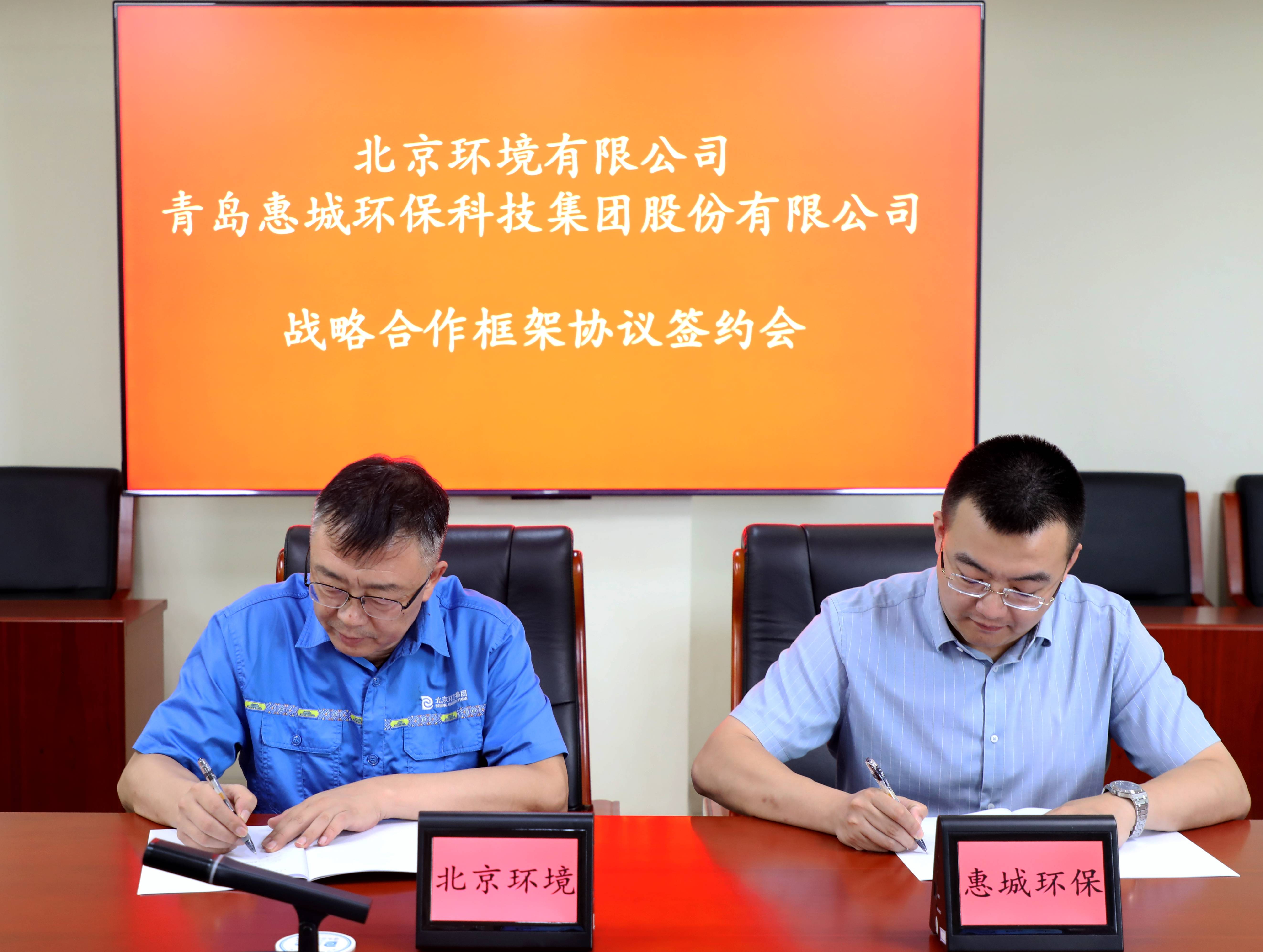 8月2日,青島惠城環保科技集團股份有限公司(簡稱“惠城環?!保┡c北京環境有限公司(簡稱“北京環境”)成功簽署戰略合作協議,惠城環??偨浝砹皱?、北京環境總經理韓曉鵬代表雙方鄭重簽約,青島惠城環境科技有限公司(簡稱“惠城環境”)總經理張秋艷等出席會議。?